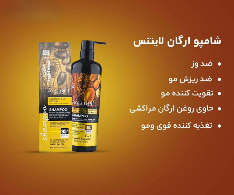- شامپو لایتنس، حاوی 95 درصد روغن آرگان خالص