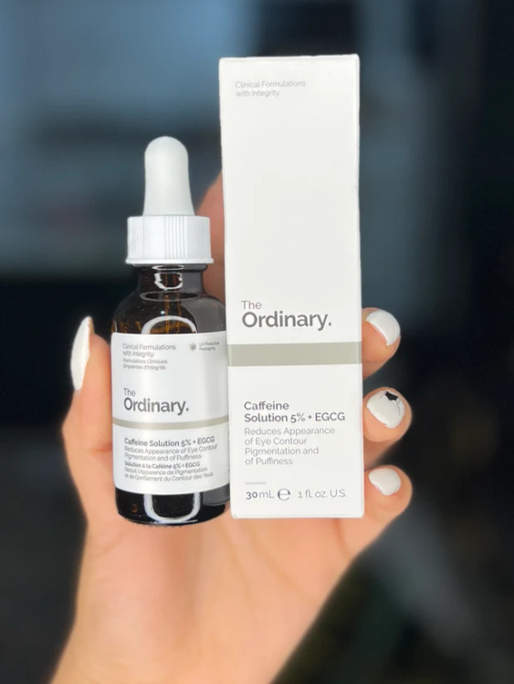 سرم دور چشم کافئین ۵% اوردینری با بافت بسیار سبک و حاوی ۵ درصد کافئین خالص و برگ درخت چای (EGCG) از بهترین محصولات دور چشم جهت رفع تیرگی و پف زیر چشم به شمار میآید. مصرف منظم سرم کافئین اوردینری به همه کسانی که به دلیل کم خوابی، کار زیاد با گوشی و رایانه و … دچار تیرگی و پف زیر چشم هستند کمک موثری میکند. سرم دور چشم کافئین ۵% اوردینری حاوی غلظت بالایی از کافئین در کنار (EGCG) با منشا چای سبز، هیالورونیک اسید، عصاره دانه سویا و اسید لاکتیک است.