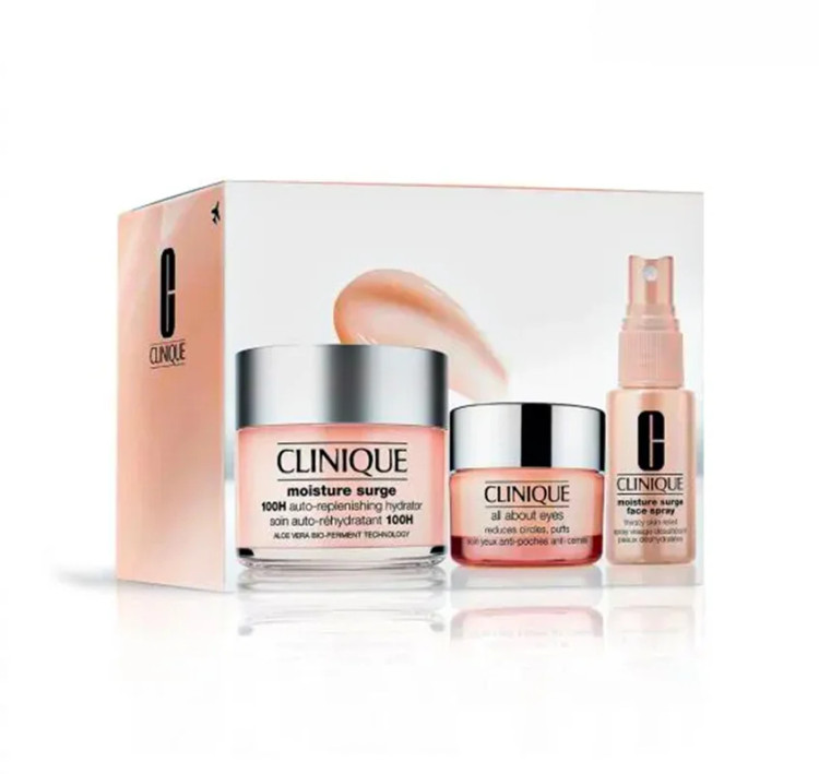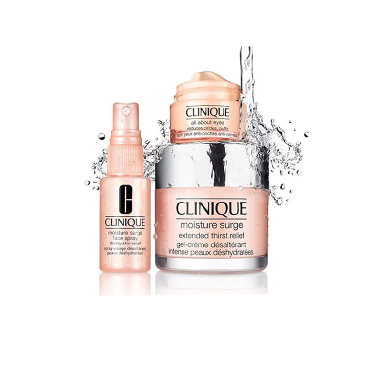 اسپری آب رسان صورت کلینیک Moisture Surge دیگر محصول موجود در ست آبرسان کلینیک است که با فرمولاسیونی فاقد چربی، پارابن و برخورداری از ترکیبات فعالی مانند عصاره آلوئه ورا به افزایش رطوبت و آب پوست کمک کرده در حدی که در مدت زمان بسیار کوتاهی پوست های دهیدراته را از خشکی و کم آبی نجات می دهد و سبب شاداب شدن آن می شود. این اسپری آب توسط پزشکان متخصص پوست و چشم، تست و تایید شده است