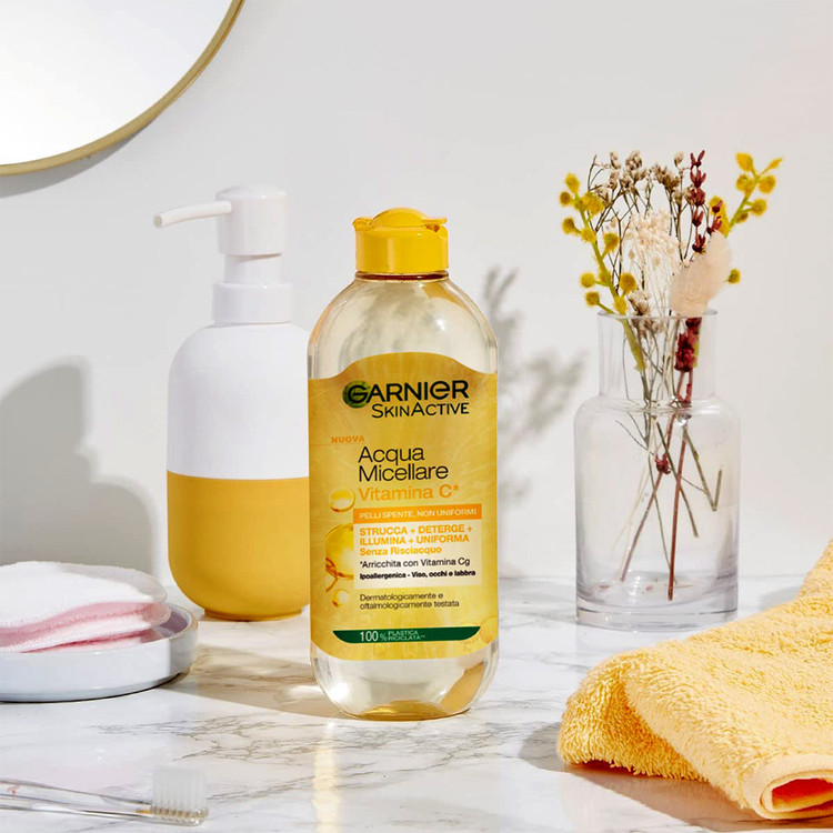 •ویتامین C: یک ماده قدرتمند که به دلیل خاصیت روشن کنندگی و روشن کنندگی آن برای تقویت پوست کدر و ناهموار شناخته شده است. میسلار واتر گارنیر تنها آب میسلار شناخته شده. توسط بنیاد پوست بریتانیا و آلرژی انگلستان به دلیل فرمول تسکین دهنده آن است . که برای انواع پوست های حساس مناسب است. این فرمول ضد حساسیت به دلیل تحمل بهینه آن برای انواع پوست مناسب است.